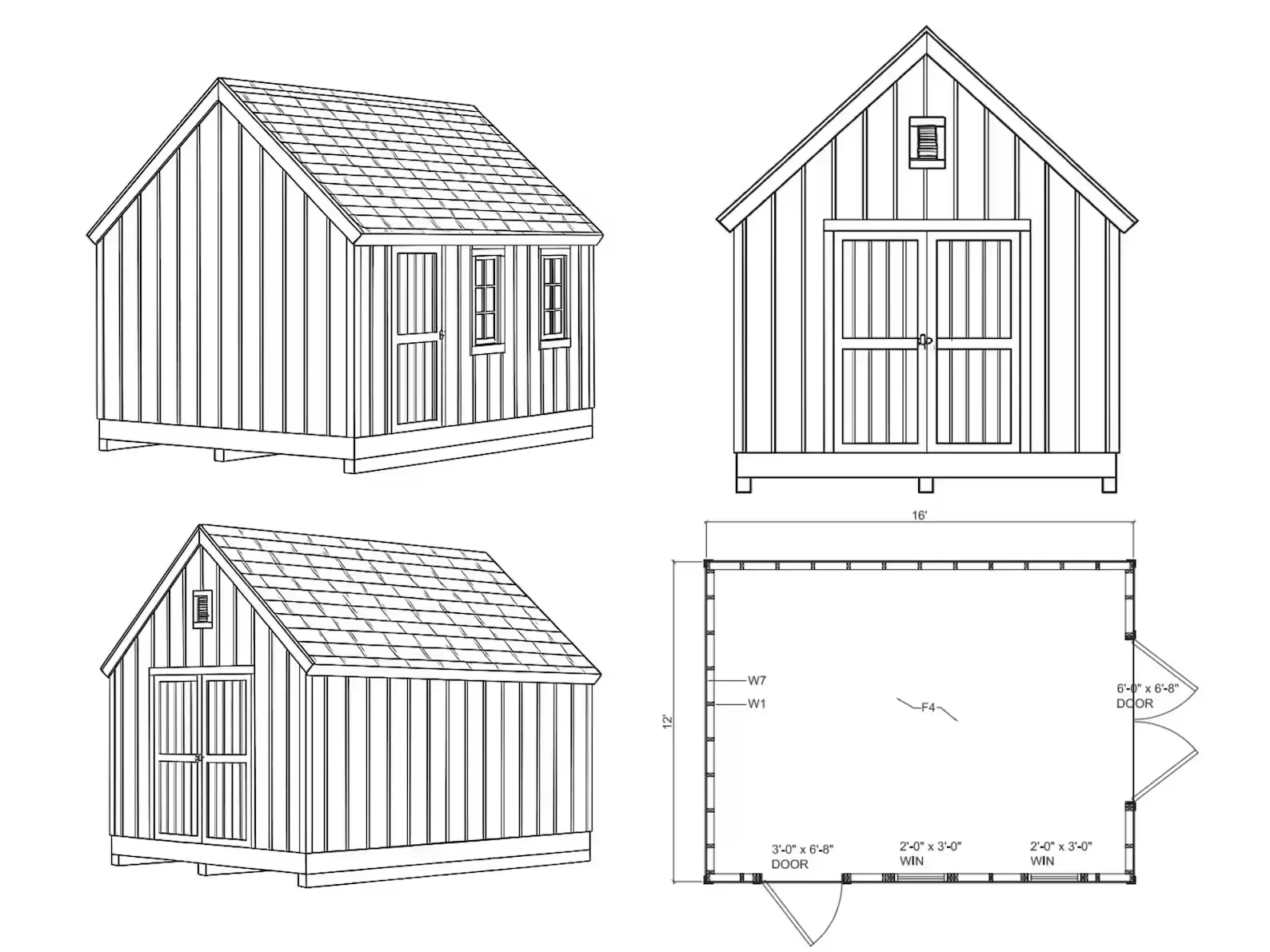 12x16 Garden Shed Plans (PDF) – DIY Storage Shed Blueprints with Materials List